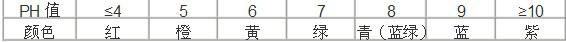答:PH試紙檢測溶液的酸堿度時,顏色變化與PH值之間的關(guān)系為: