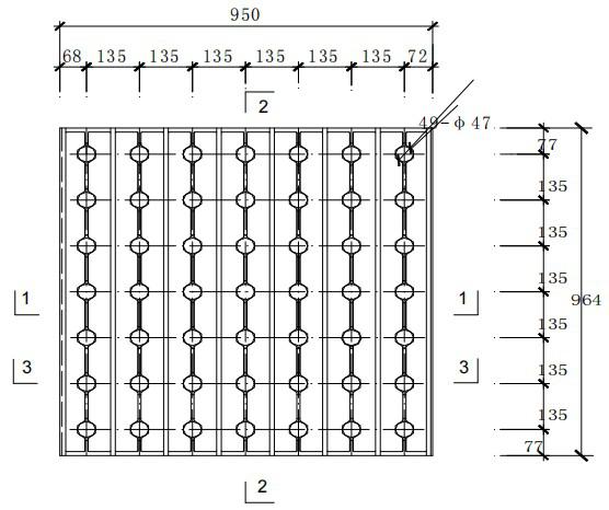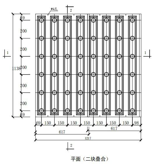 注:孔距尺寸為標(biāo)準(zhǔn)尺寸,必要時可根據(jù)濾池設(shè)計要求,采用特殊模板確定。